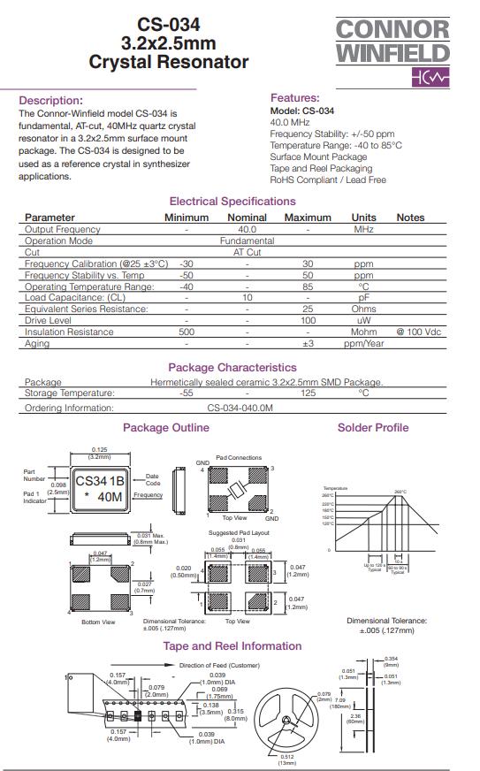| CS-034-040.0M | Connor-Winfield晶振 | CS-034 | 40MHz | ±50ppm | ±30ppm | 10pF |