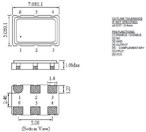 | Size/Dimension尺寸 | 7.00mm x 5.00mm | 最小包裝數(shù)MPQ: | 1000 |