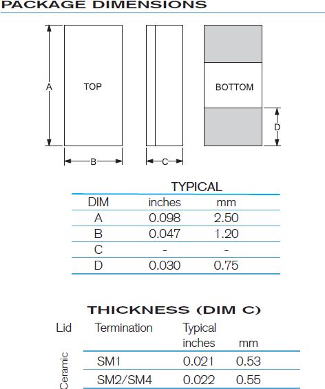 | Type 系列: | MHz Crystal | 腳位 Termination: | 2 pad |