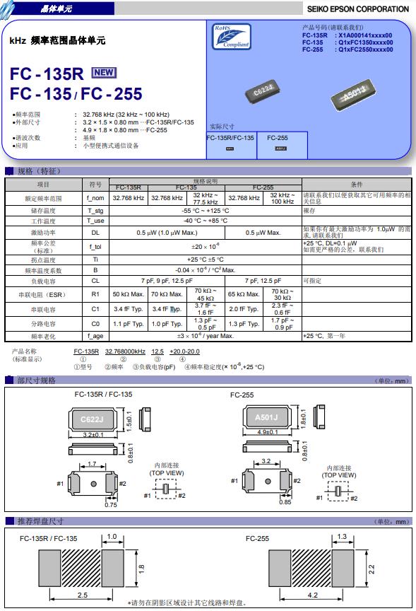 | X1A000141002200 | 3.2 x 1.5 x 0.9 mm | FC-135R | 32.768kHz | 18 pF | -40 to +85 °C |