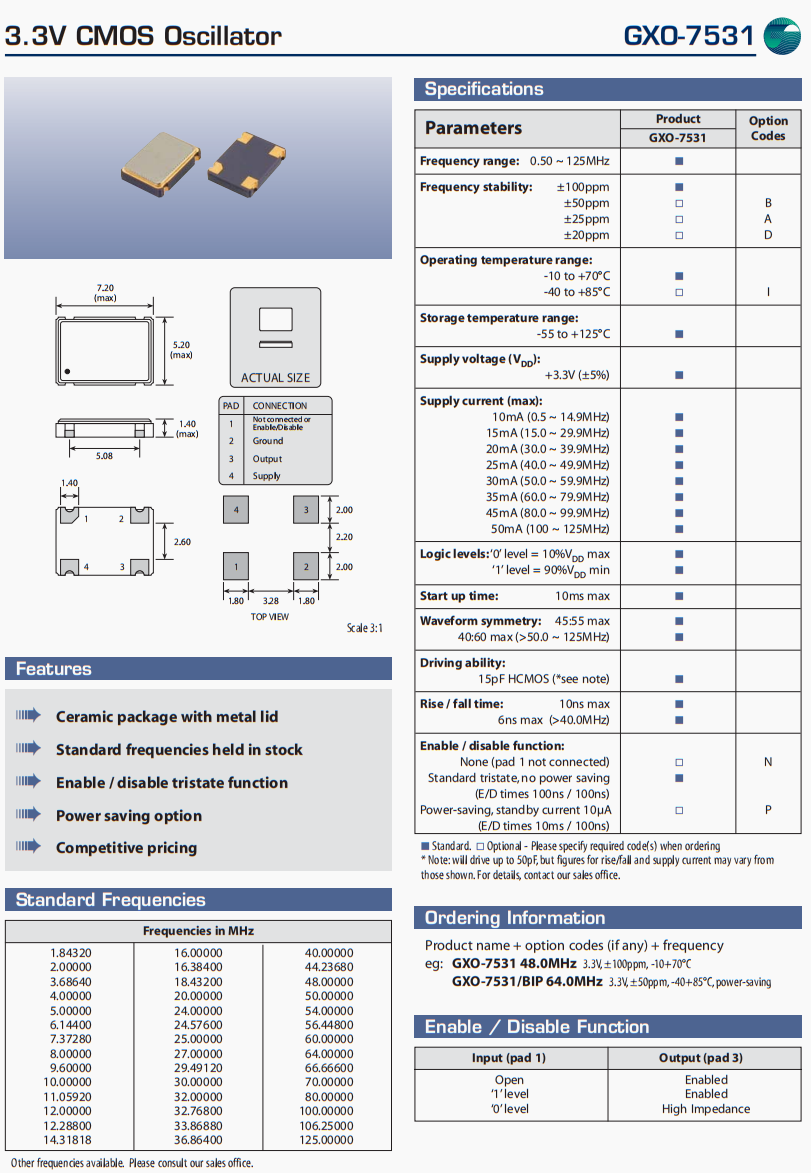 | 頻率穩(wěn)定度 | ±100ppm,±50ppm,±25ppm,±20ppm |