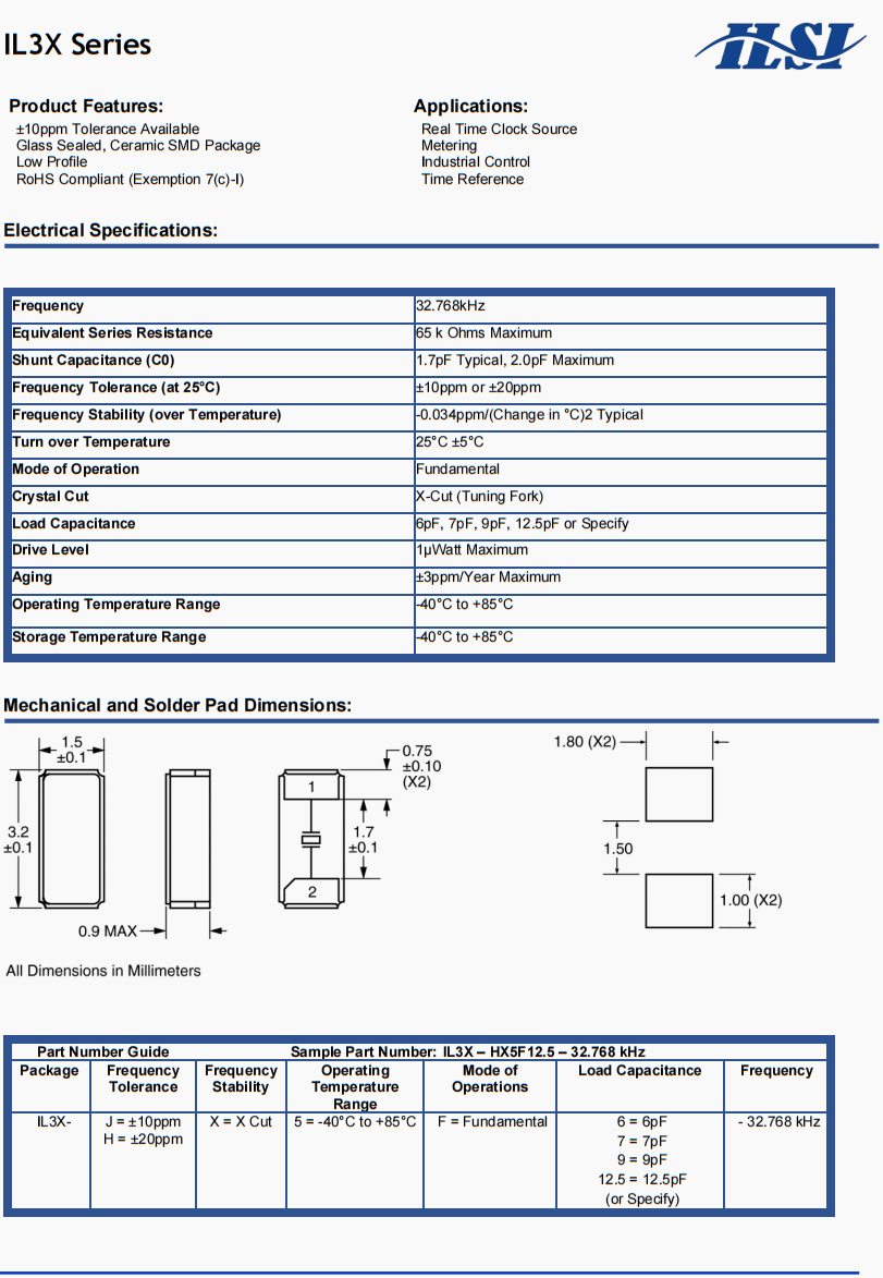 IL3X進(jìn)口晶振,IL3X-HX5F12.5-32.768KHz晶振,ILSI無(wú)線局域網(wǎng)晶振