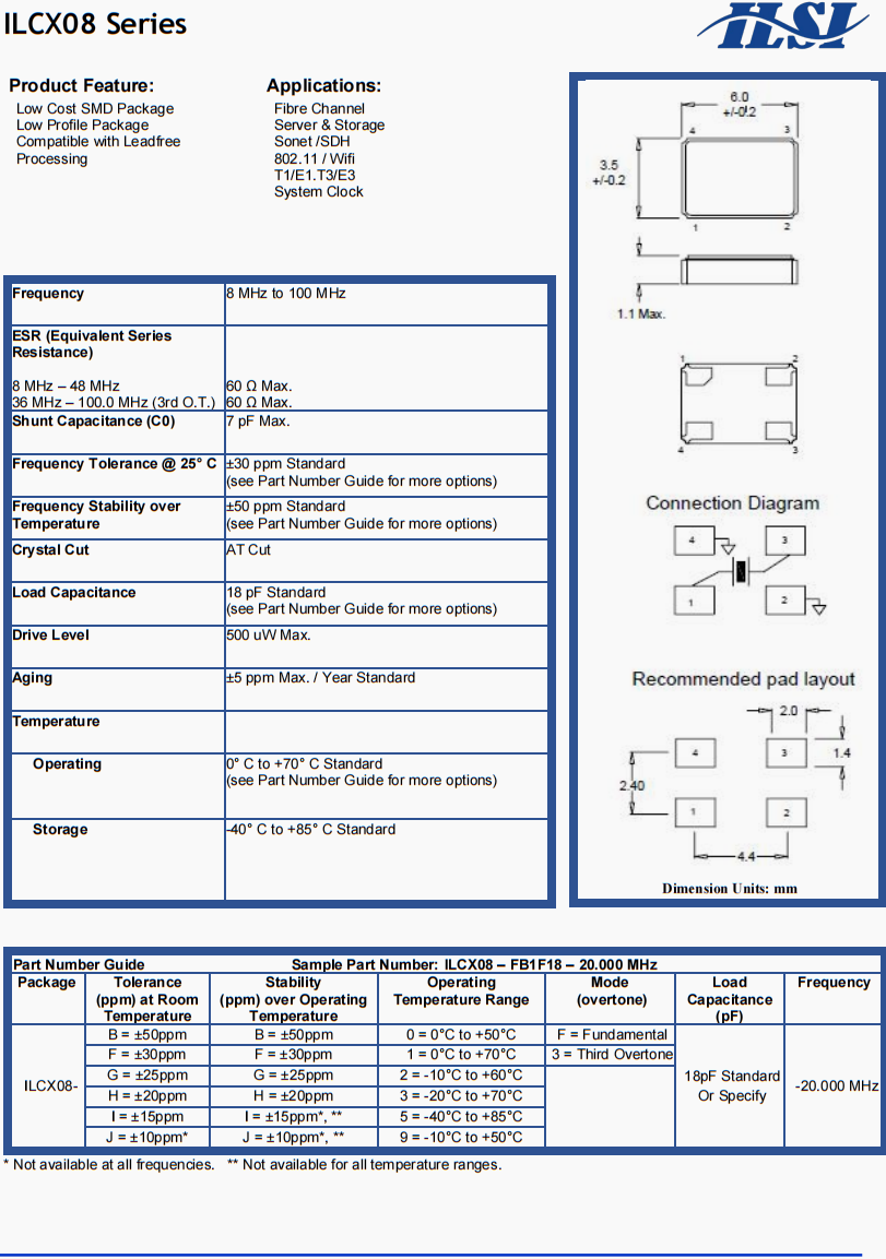 | 負載電容 | 18 pF Standard(see Part Number Guide for more options) |