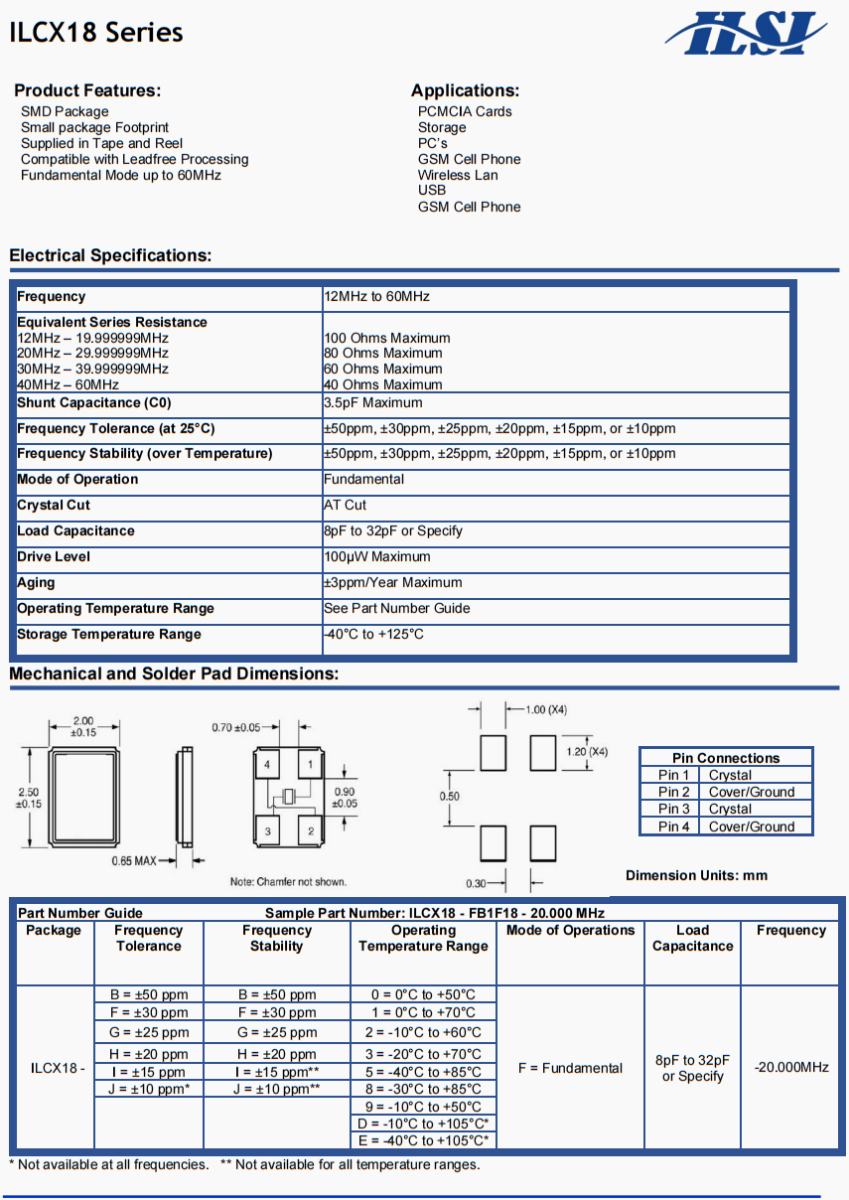 ILCX18四腳無(wú)源晶振,ILSI無(wú)人機(jī)遙控晶振,ILCX18-FF5F18- 16.000 MHz石英晶振