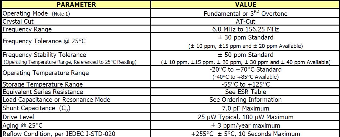 407的基本參數(shù)及工作條件如下:頻率范圍6 - 156.25 MHz,頻率公差,±30 ppm標(biāo)準(zhǔn),(±10 ppm,±15 ppm和±20 ppm可用),頻率穩(wěn)定度,±50 ppm標(biāo)準(zhǔn)(±20±±10日,15日,±30和40±ppm),操作溫度為-40°C + 85°C,磁帶和卷軸包裝,eia - 481 - 2兼容,符合RoHS /綠(6/6),穩(wěn)定寬容/溫度范圍,在工作溫度范圍內(nèi)(引用到25°C閱讀),模式MHz的振蕩頻率,F =基本,T = 3日泛音,M -表明兆赫和小數(shù)點(diǎn).與最低頻率記錄4,有效數(shù)字的右邊“M”.