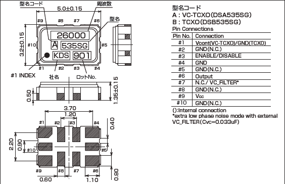 DSA535SGA-10.000MHZ,壓控溫補(bǔ)晶振,削峰正弦波輸出晶振