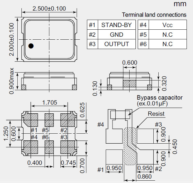 建議將輸出負(fù)載安裝在盡可能靠近貼片晶振的地方(在20 mm范圍之間)。