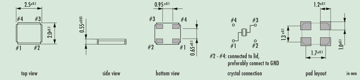 | 老化 | < ± 3 ppm first year (< ± 1 ppm for tol. ± 10 ppm) | |||||||||