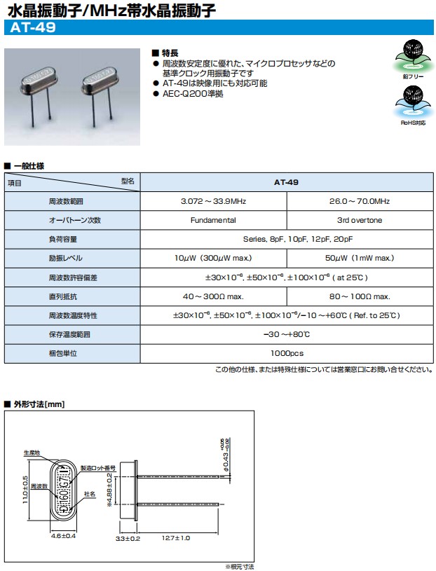 日本KDS大真空晶振,AT-49插件晶振,1AC112893EA進口晶振