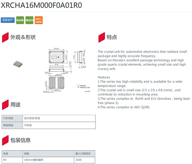 日本村田進(jìn)口晶振HCR2520,XRCHA16M000F0A01R0汽車電子專用晶振,參數(shù)圖
