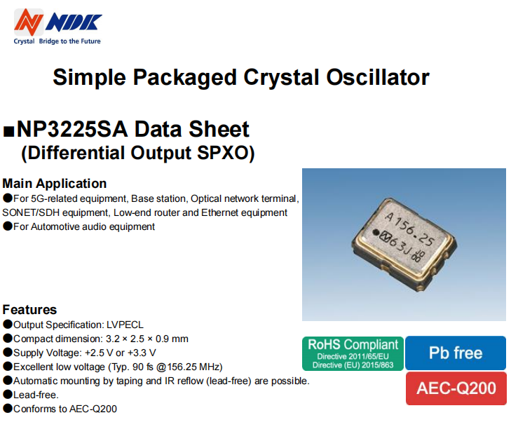 | NP3225SA | 200MHZ | NSC5237A | 3.2x2.5 | LVPECL | -40?+105 | +2.5±0.125 |