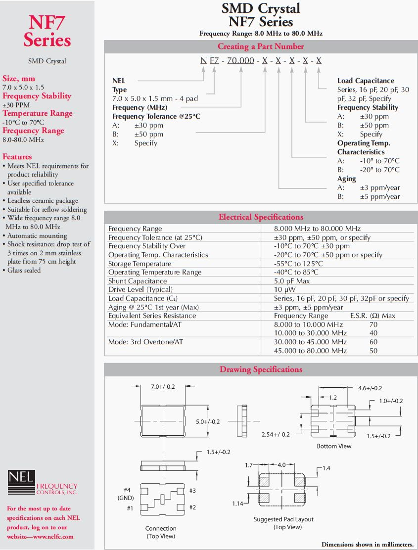 - 產(chǎn)品描述:NEL晶振,NF7-48.000-ABBA20PF四腳晶振,6G路由器晶振,NEL晶振公司,歐美晶振,符合NEL產(chǎn)品可靠性要求,用戶指定公差,無鉛陶瓷封裝,適用于回流焊,寬頻率范圍8.0MHz至80.0MHz,自動安裝,抗沖擊:在2mm不銹鋼板上從75...