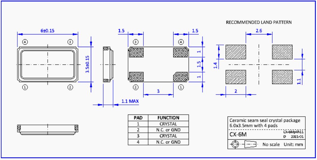 多功能方向盤晶振,NKG晶振,S6M100.0000F18EYY-EXT四腳晶振。石英晶體單元在陶瓷縫密封SMD封裝,尺寸6.0 x 3.5mm。S6M。產(chǎn)品特點:小包裝尺寸6.0 x 3.5 x 1.0mm與4個墊。優(yōu)異的耐熱性和抗震性。高可靠的縫封封裝,低老化。符合AEC-Q200標準的汽車級產(chǎn)品可供選擇。應用:微處理器,局域網(wǎng),無線局域網(wǎng),調(diào)制解調(diào)器,移動通信,便攜式設備。NKG晶振公司,無線傳輸晶振,汽車藍牙晶振,移動通訊晶振,石英晶振,高品質(zhì)晶振,低損耗晶振,汽車級晶振,車載音響系統(tǒng)晶振,便攜設備晶振,USB存儲設備晶振。4025晶振,小體積晶振,超薄晶振,貼片晶振,進口晶振,