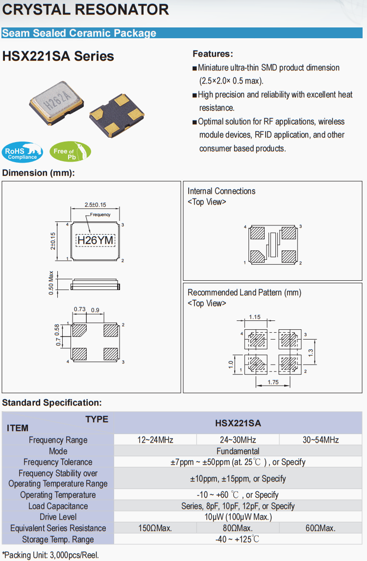 X2B026000B71HA-HZ晶振,臺(tái)灣加高晶體,物聯(lián)網(wǎng)終端晶振,特點(diǎn):微型超薄SMD產(chǎn)品尺寸(2.5×2.0×0.5 max)。高精度、可靠性高,耐熱性好。針對(duì)射頻應(yīng)用、無線模塊設(shè)備、RFID應(yīng)用和其他基于消費(fèi)者的產(chǎn)品的優(yōu)化解決方案。臺(tái)灣加高晶振公司,HELE晶振,高品質(zhì)晶振,SMD晶振,石英晶振,無源晶振,高精度晶振,6G通訊設(shè)備晶振,無線傳輸晶振,局域網(wǎng)晶振,2520晶振,小體積晶振,低損耗晶振 ,北斗衛(wèi)星定位模塊晶振