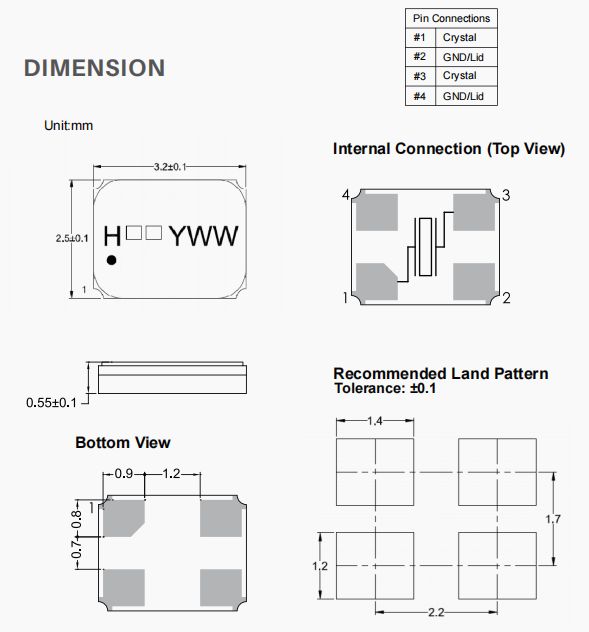 | X3S032000BC1HA-CHPZ | 加高晶振 | HSX321S | 32 MHz | ±10ppm | 12pF | -30°C ~ 85°C |