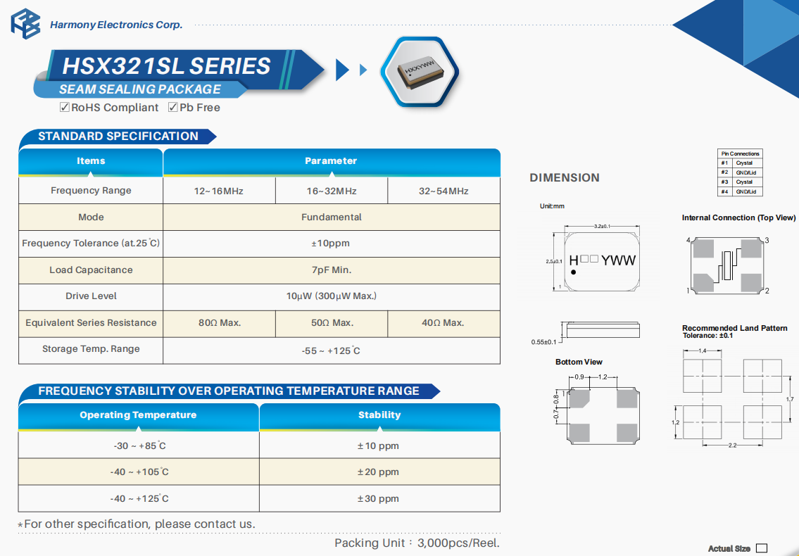 | X3S020000BF1HA‐V | 加高晶振 | HSX321S | 20 MHz | ±30ppm | 15pF | -40°C ~ 85°C |