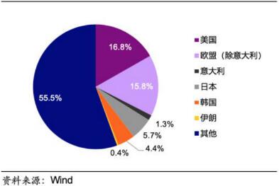 中國(guó)主要對(duì)外出口國(guó)及出口比例