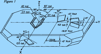無線應(yīng)用中最常用的晶體切割角度是AT切割(見圖1),以這種方式制造的石英晶體可以以相對高的頻率獲得,表現(xiàn)出優(yōu)異的頻率與溫度穩(wěn)定性,并且成本適中,從1MHz到1GHz以上的基本諧振頻率是可能的,但由于價格和其他限制,大多數(shù)AT切割晶體的基本頻率在1.8到40MHz之間,AT切割晶體的諧振模式(泛音)大約是基模的奇數(shù)倍(見圖2),為這些泛音指定的石英晶振通常落在24至200MHz的頻率范圍內(nèi).