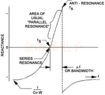 用于確定設備的相對質(zhì)量或運行效率的度量.在晶體諧振器中,它是運動電感或電容的電抗除以運動電阻(請參閱下面的有用公式).石英晶體諧振器可獲得的最大短期穩(wěn)定性取決于”Q”值.在圖1中,串聯(lián)和并聯(lián)頻率之間的間隔稱為帶寬.隨著帶寬變小,”Q”的值增加,電抗斜率變陡.外部電路組件電抗的變化對高”Q”晶體的影響較小(“可拉性”較小),因此,短期穩(wěn)定性更高. 運動電容(C1):