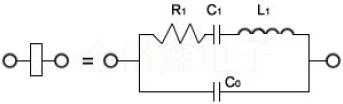 等效電路(如圖A所示)描繪了以自然諧振頻率工作的Quartz Crystal單元的電活動.分流電容(Co)表示晶體電極的電容加上支架和引線的電容.R1,C1和L1組成了晶體的”運動臂”,被稱為運動參數(shù).運動電感(L1)代表晶體單元的振動質(zhì)量.運動電容(C1)代表石英的彈性,而電阻(R1)代表石英內(nèi)部發(fā)生的體積損失.
