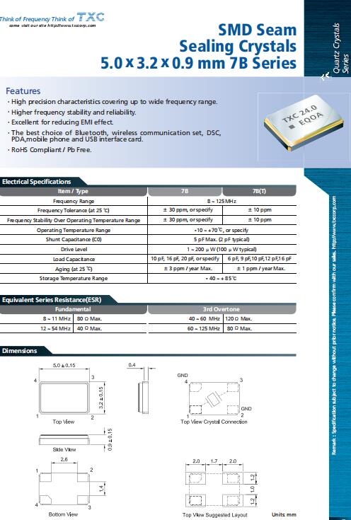 | 7B-13.000MAAJ-T | TXC晶振 | 7B | 13MHz | ±30ppm | -20°C ~ 70°C |