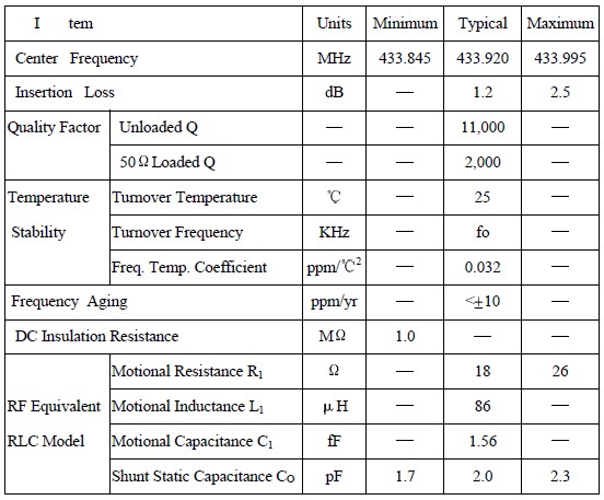 R433.92M濾波器,TO-39聲表濾波器,圓形濾波器