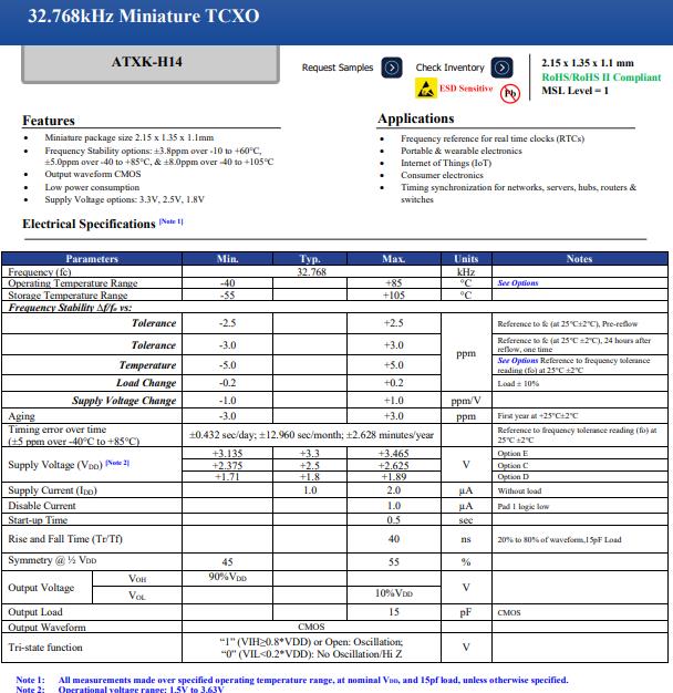 Abracon的ATXK-H14溫補晶振廣泛用于便攜式和可穿戴電子產(chǎn)品,ATXK-H14有源晶振特征