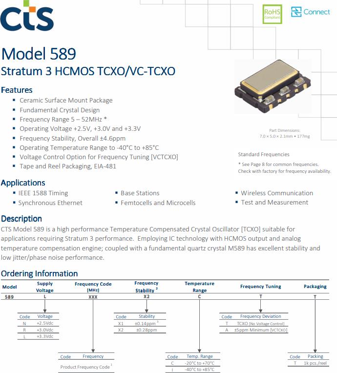 具有低相位噪聲性能的TCXO為微蜂窩技術(shù)提供穩(wěn)定性能和靈活性CTS589L120X2CTT
