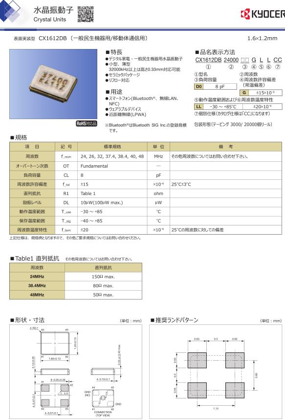 編碼CX1612DB24000D0GLLCC專供應(yīng)于民生機(jī)器應(yīng)用的京瓷無(wú)源晶體