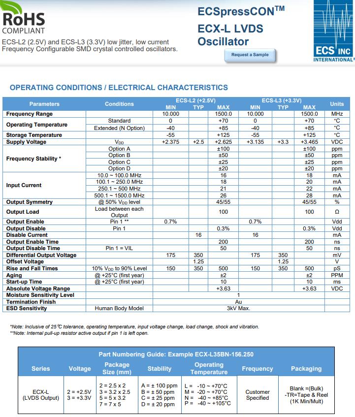 | ECX-L33BN-66.666 | ECS差分晶振 | ECSpressCON™ ECX-L | 66.666MHz | -40°C ~ 85°C |