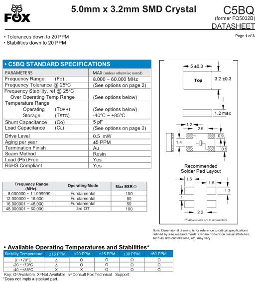 | FQ5032B-18.432 | FOX無源晶振 | C5BQ | MHz Crystal | 18.432MHz | ±30ppm |