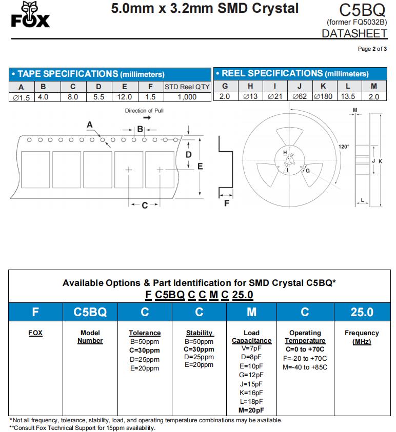 | FQ5032B-25.000 | FOX無源晶振 | C5BQ | MHz Crystal | 25MHz | ±30ppm |