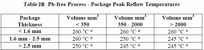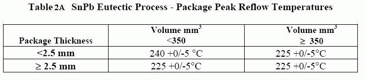 表2:峰值溫度[來(lái)自J-STD-020C]