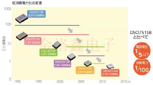 通過降低晶體產(chǎn)品的功耗,可以降低使用它們的電子設(shè)備(如計算機,智能手機和平板電視)的功耗.一些功率是由熱能產(chǎn)生的,并且隨CO2的產(chǎn)生而產(chǎn)生,因此功耗的減少有助于減少CO2.以石英晶體振蕩器為例,DSO221SN(2.5×2.0×0.815mm)及其小型版本DSO211AN(2.0×1.6×0.72mm)的電源電壓為0.9V,約為DSO751SB的5V的1/5或更小.功耗已從90mW降低到0.9mW,不到1/100. 小型化的措施:
