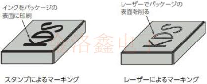 從使用激光標識油墨的凸版標識變更為使用激光加工成金屬陶瓷樹脂面的標識.在消除墨水的使用的同時,伴隨著小型化,貼片晶振表面的微細標記也成為可能.
