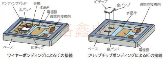 將IC和封裝的連接從用金線封裝IC表面形成的電極的方法變更為將IC焊盤上形成的稱為金凸點的端子直接連接到封裝的方法.能夠減小安裝面積和封裝的高度,實現(xiàn)了小型化、節(jié)省資源化.