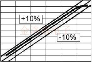 ●線性通常指定為相對(duì)于調(diào)整曲線的直線擬合的總調(diào)整偏差的百分比.10%的線性度規(guī)格將允許與1KHz調(diào)諧范圍的振蕩器的最佳直線擬合相差100Hz.潛在的問題是,該偏差可能會(huì)在范圍的一端迅速出現(xiàn),如下所示.盡管振蕩器符合相當(dāng)嚴(yán)格的線性指標(biāo),但在曲線頂部的斜率明顯較低.對(duì)于調(diào)諧斜率會(huì)影響環(huán)路穩(wěn)定性的PLL系統(tǒng),除了線性百分比外,還應(yīng)指定曲線上所有點(diǎn)的最小和最大調(diào)諧斜率.