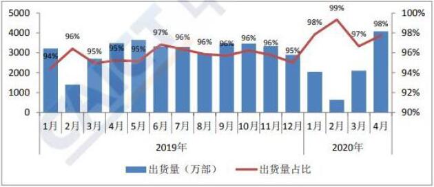 4月份國(guó)產(chǎn)智能機(jī)銷量增長(zhǎng)14.2%結(jié)束連續(xù)10個(gè)月下降的趨勢(shì)