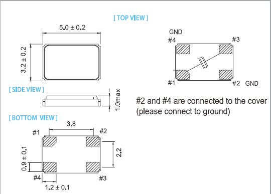 XVCCECNANF-25.000000~臺(tái)灣Taitien晶振~5032mm四腳貼片晶振 尺寸圖