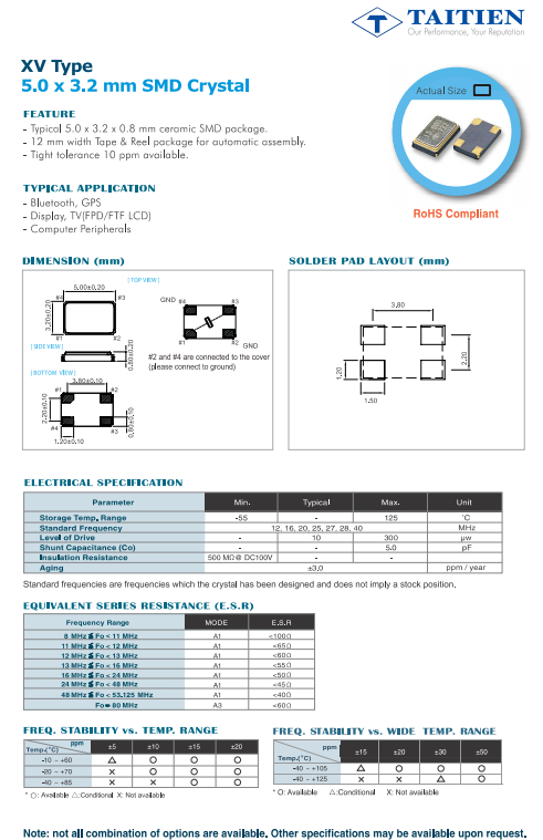 XVCCECNANF-25.000000~臺(tái)灣Taitien晶振~5032mm四腳貼片晶振,參數(shù)圖