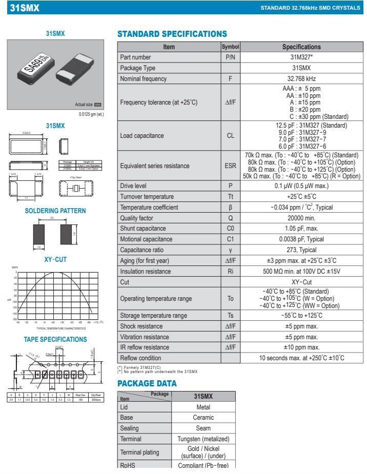 負載電容: 12.5 pF : 31M327 (Standard)